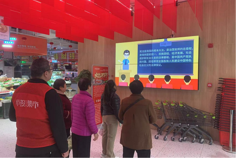 本次活動以“大力弘揚憲法精神,推進(jìn)全面依法治國”為主題,通過開展普法講座集中學(xué)習(xí)、設(shè)立法律咨詢臺現(xiàn)場交流等形式,宣講憲法的誕生、修改歷程、主要內(nèi)容和重大意義,將大力弘揚憲法精神的觸角延伸至一線,并充分利用市場大屏這一有力宣傳平臺,持續(xù)滾動播放憲法宣傳的豐富內(nèi)容,以生動直觀的方式,向廣大商戶群眾進(jìn)行廣泛深入的宣傳。